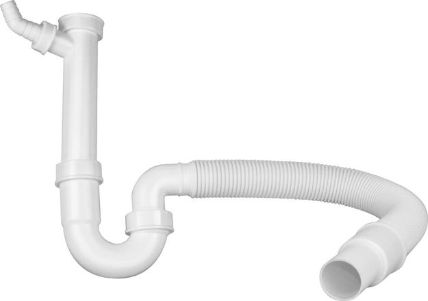 Сифон 1 1/2" с гофрированной трубкой. Выход на 40 и 50 мм имеет отвод под стиральную или посудомоечную машину.